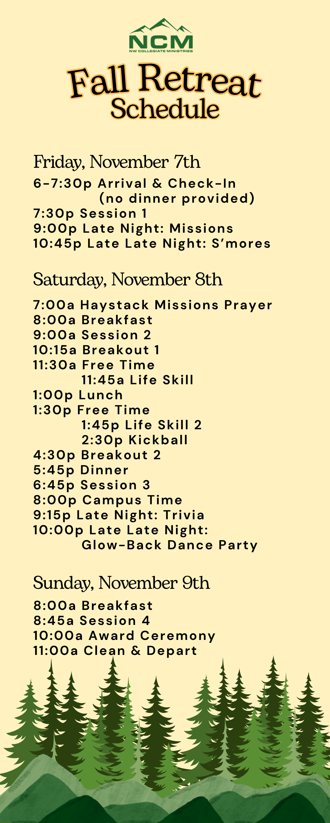Write a haiku, limerick, or acrostic about Fall Retreat (3 points each, can only do one of each per team)